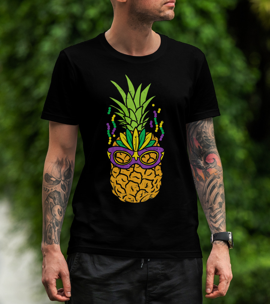 Pineapple Jester Mask Mardi Gras Fruit Funny Cool T-Shirt
