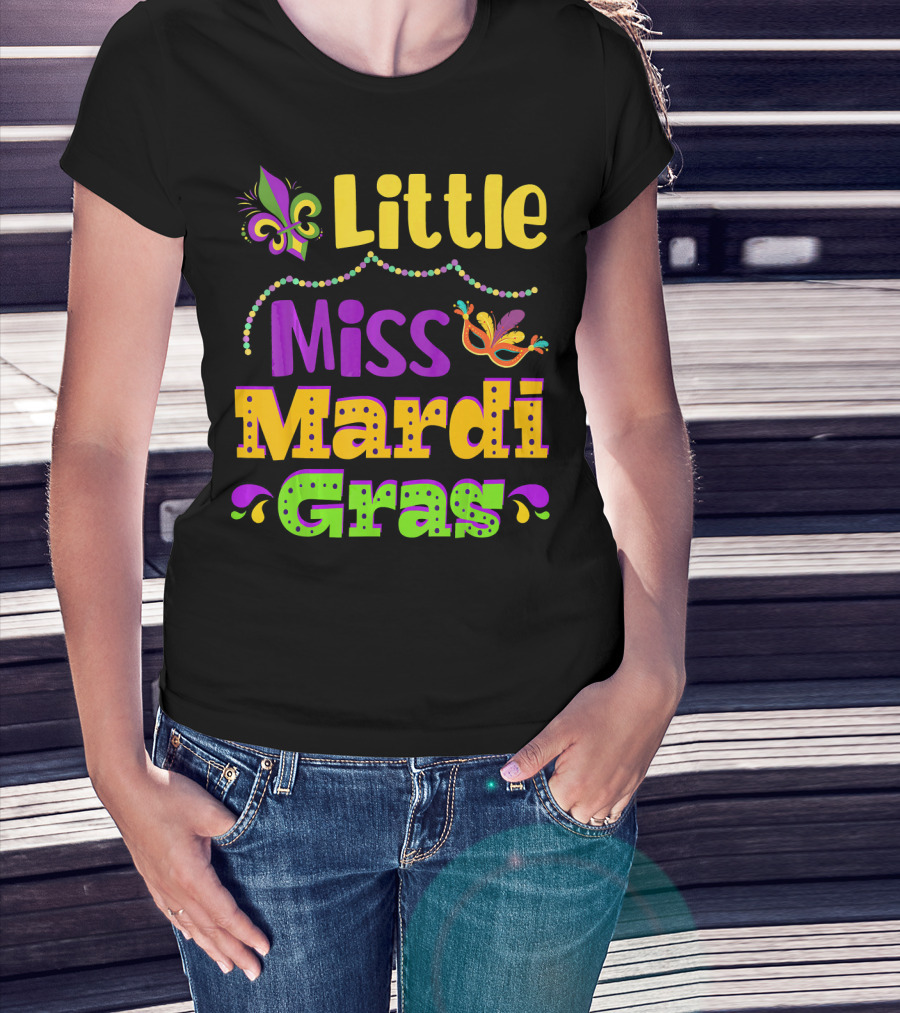 Little Miss Mardi Gras Fleur De Lis Beads Mask T-Shirt