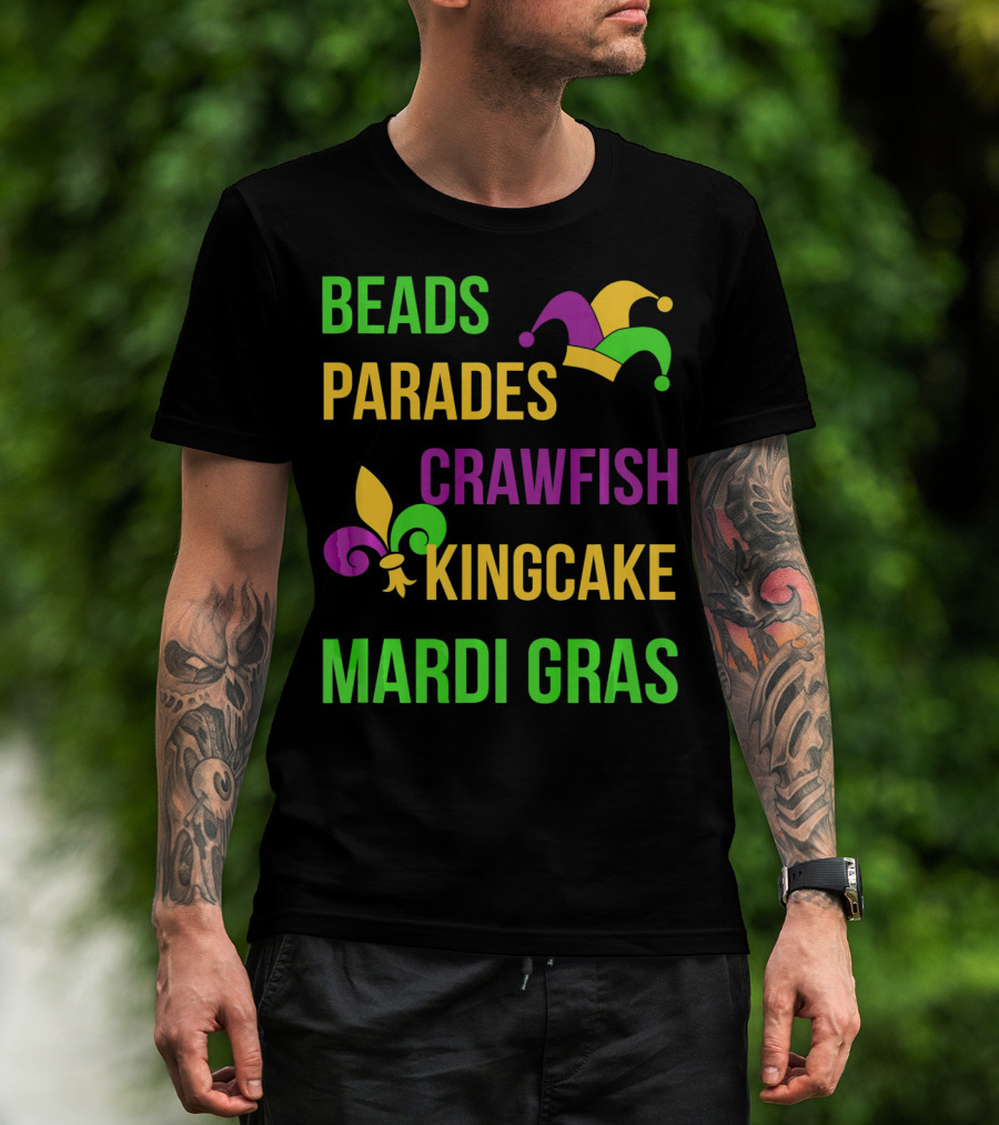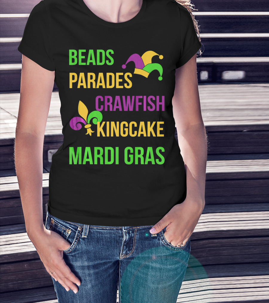 Beads Parades Crawfish Kingcake Mardi Gras T-Shirt