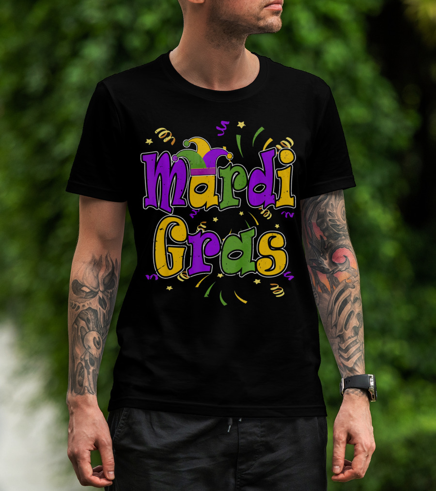 Mardi Gras Colorful Celebration Letters And Decorations T-Shirt