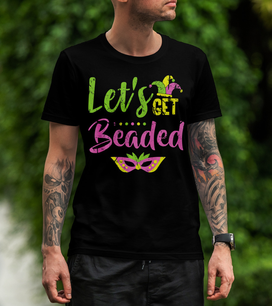 Let’s Get Beaded Mardi Gras Mask Jester Hat T-Shirt