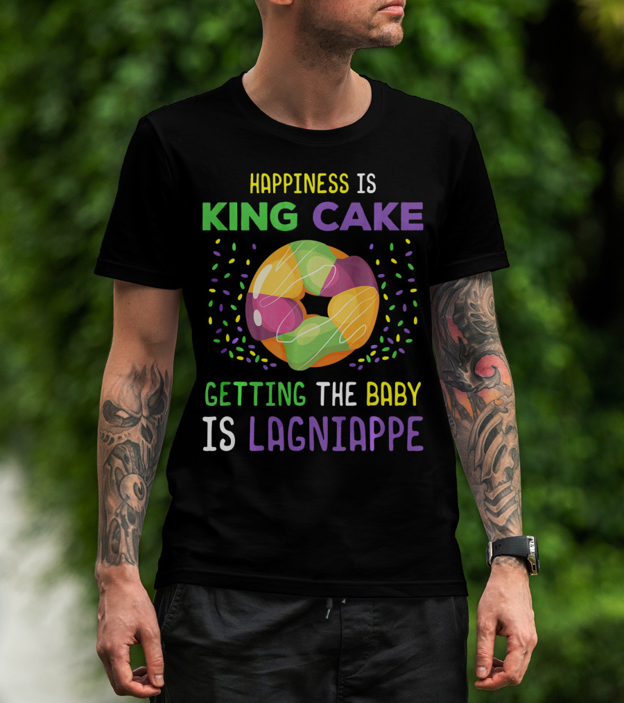 Happiness Is King Cake Getting The Baby Is Lagniappe Mardi Gras Costume T-Shirt