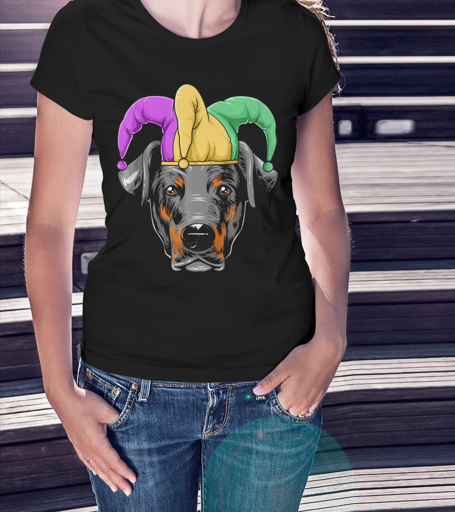 Mardi Gras Doberman Jester Hat Carnival Doberma T-Shirt