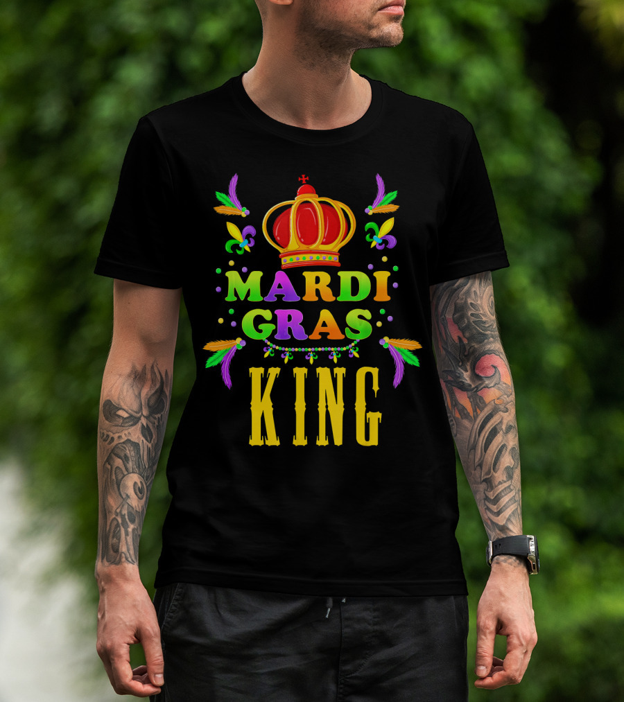 Mardi Gras King Cute Shrove Tuesday Fun Colorful Crown Feathers Fleur-de-Lis T-Shirt