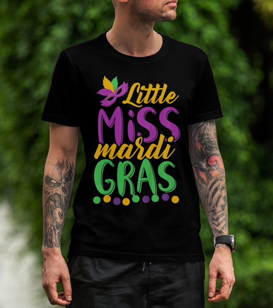 Little Miss Mardi Gras Funny Mardi Mask Feathers Colorful Dots T-Shirt