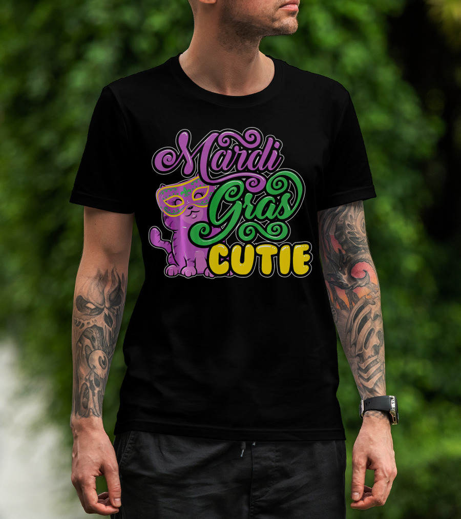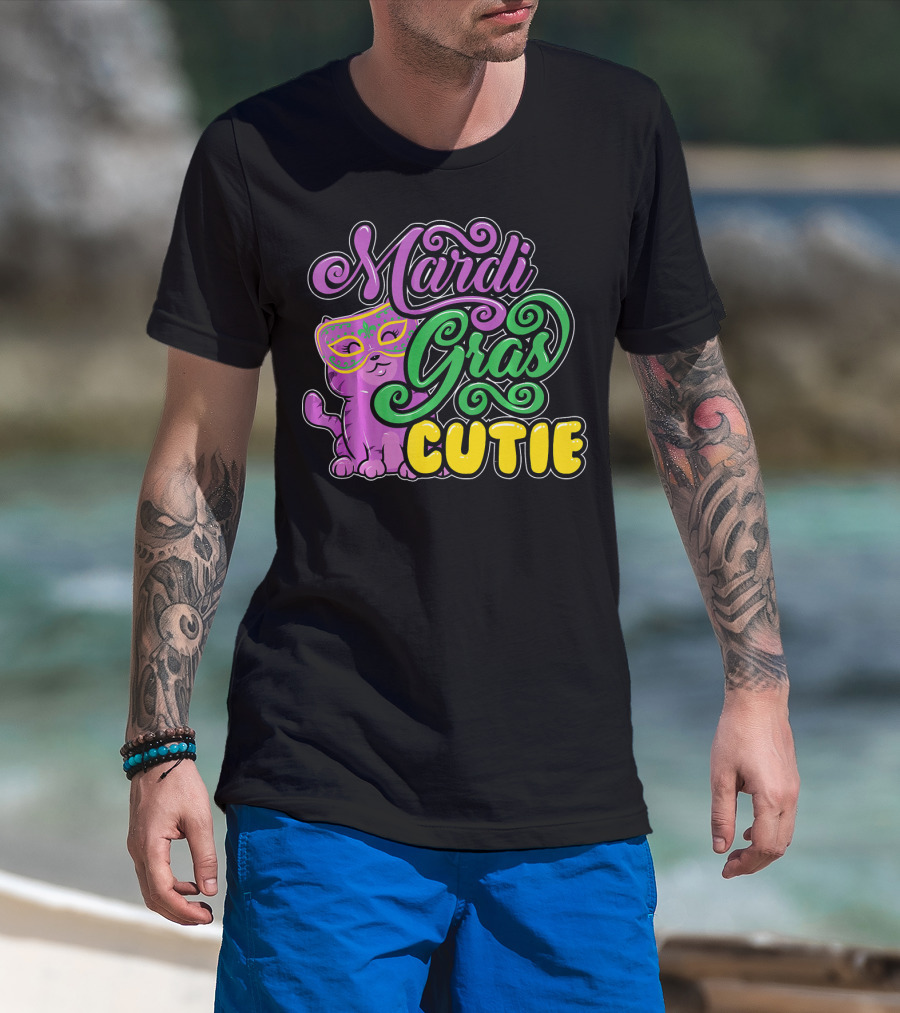 Mardi Gras Cutie Girls Parade Cute Novel Cat With Mask T-Shirt
