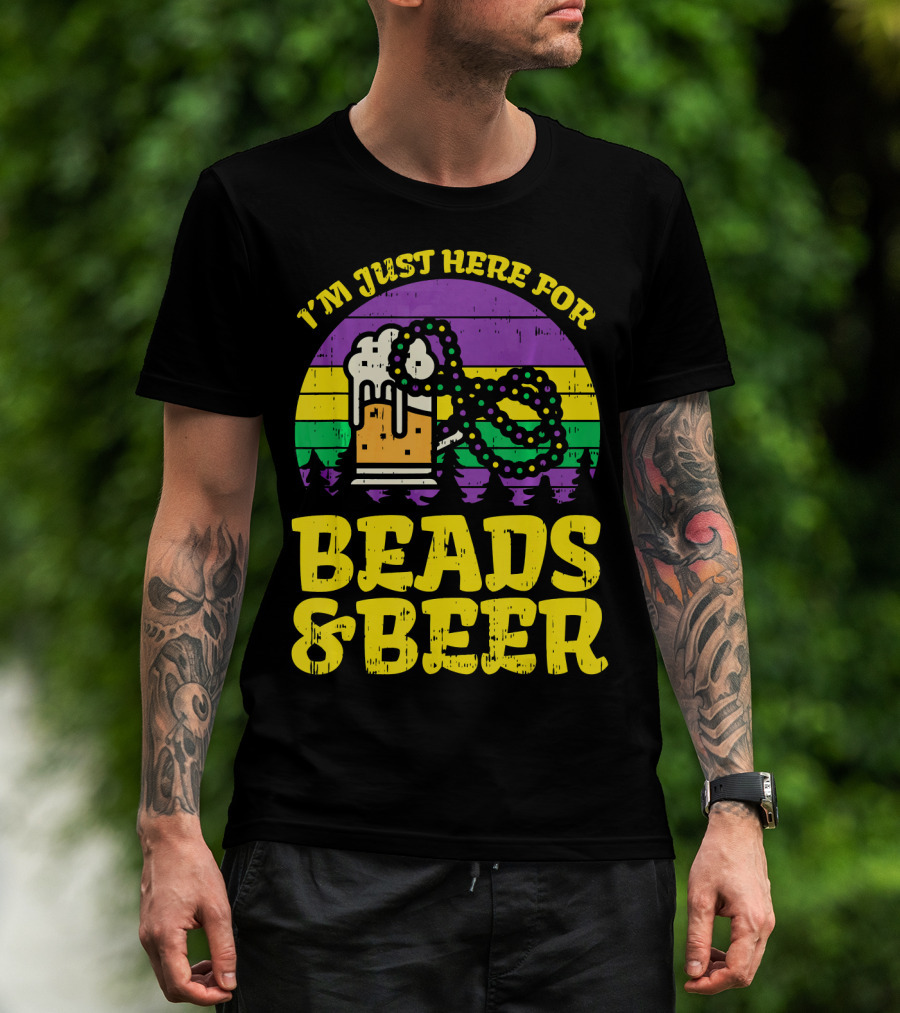 I'm Just Here For Beads And Beer Funny Mardi Gra T-Shirt