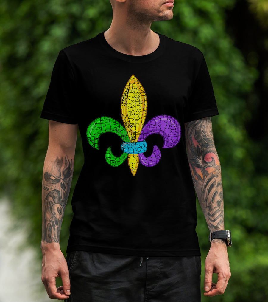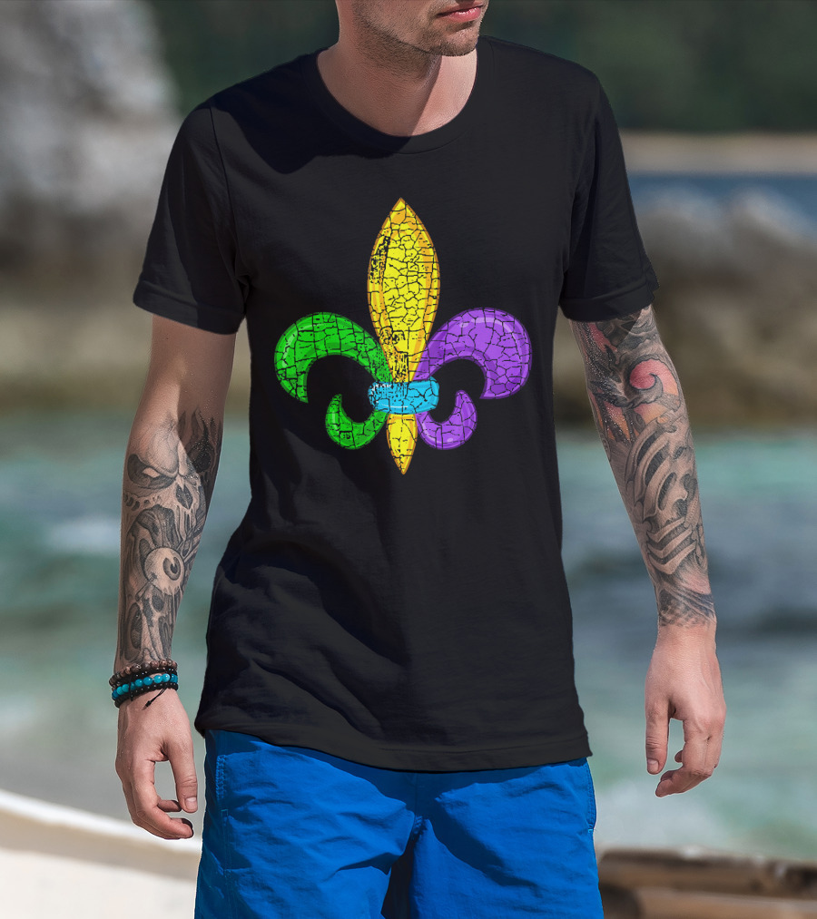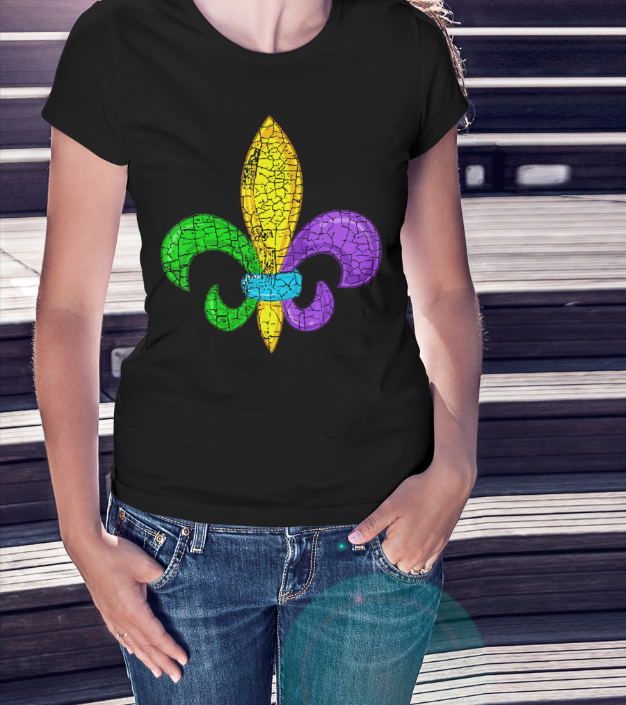 Fleur De Lis Mardi Gras Cute Fat Tuesday Cracked Texture T-Shirt