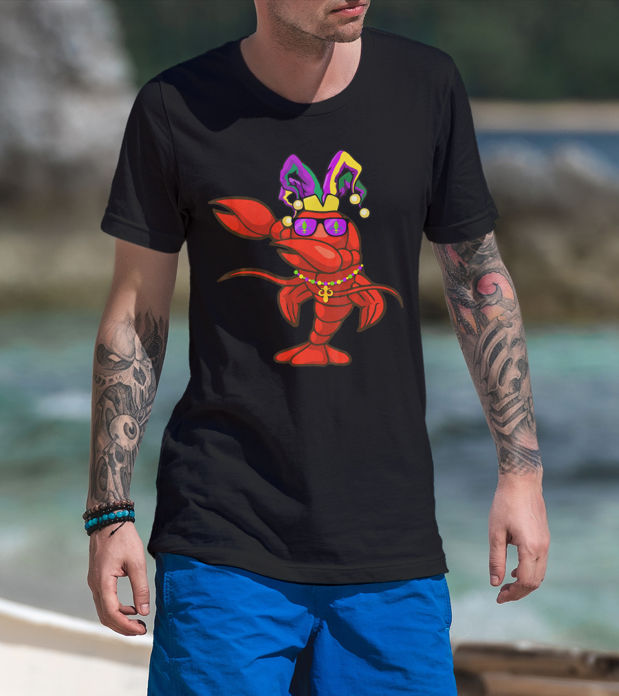 Dabbing Crawfish Mardi Gras Bead Hat Party T-Shirt
