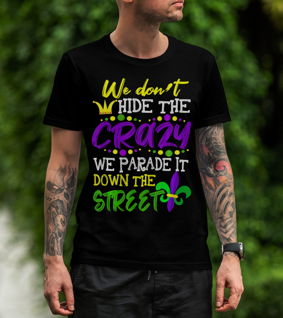 We Don't Hide The Crazy We Parade It Down The Street Mardi Gras Fleur-de-Lis T-Shirt