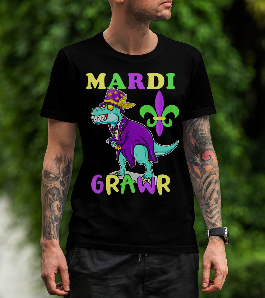 Mardi Grawr Dinosaur Rex New Orleans Fleur De Lis T-Shirt