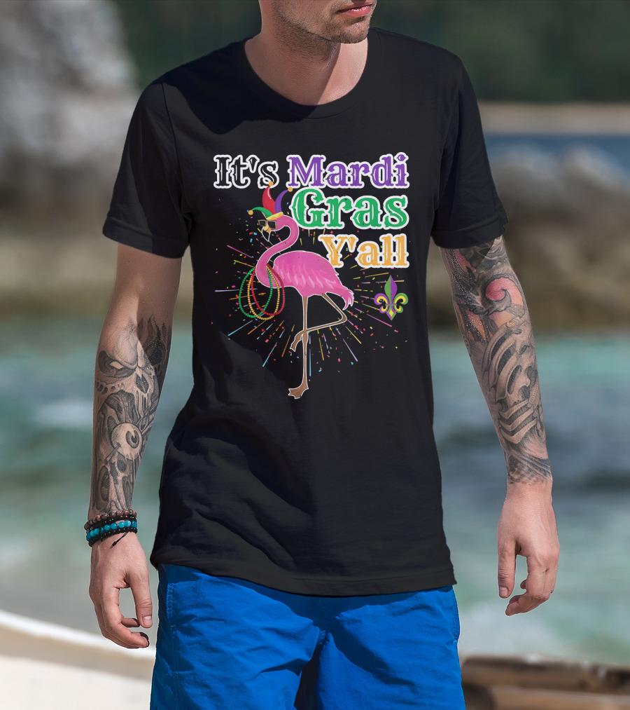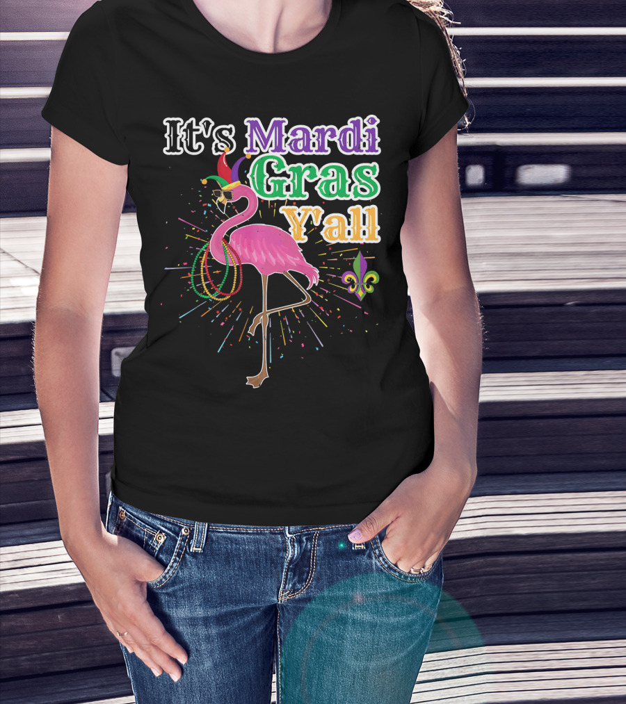 Flamingo It's Mardi Gras Y'all With Beads And Fleur-de-lis T-Shirt