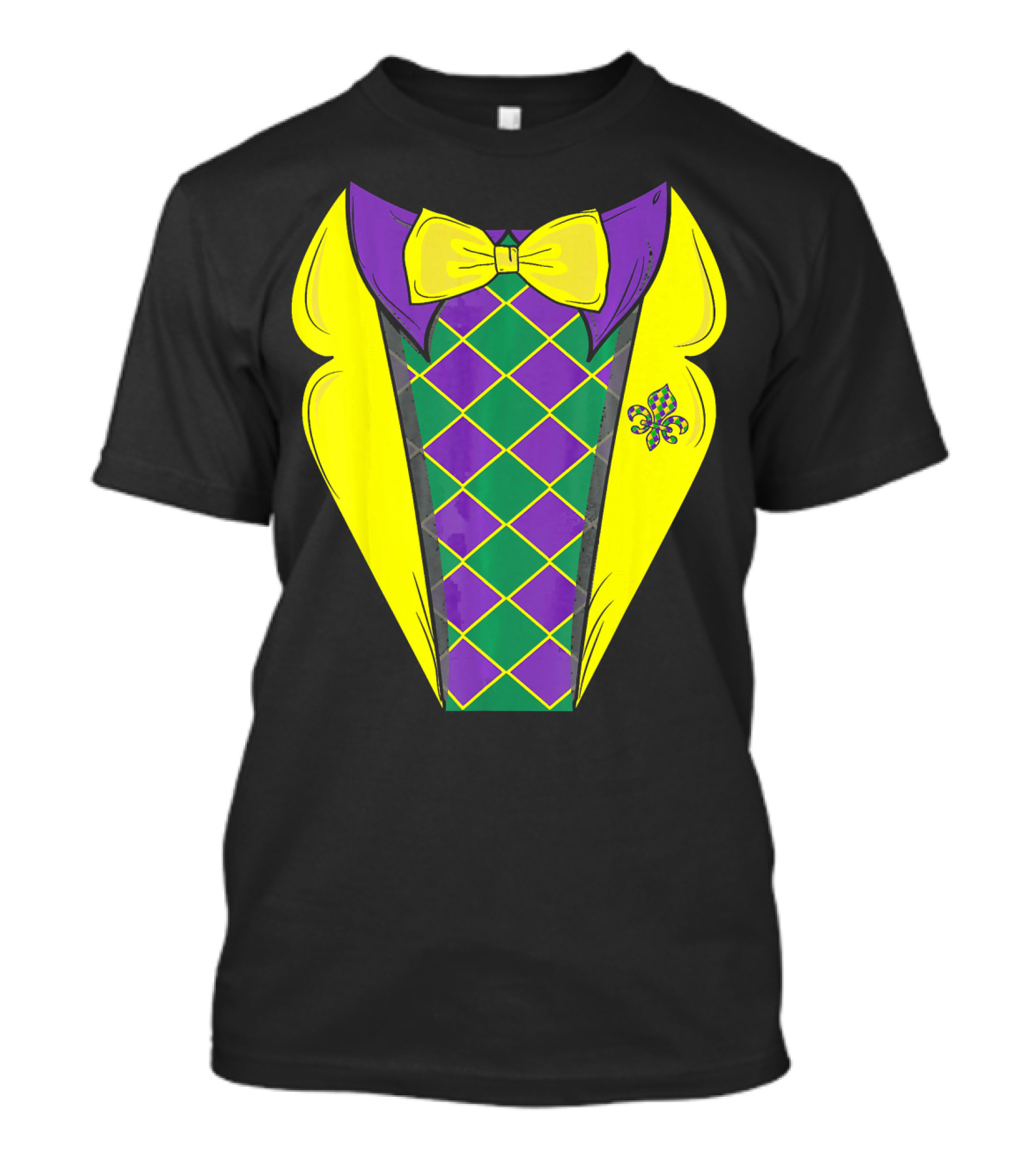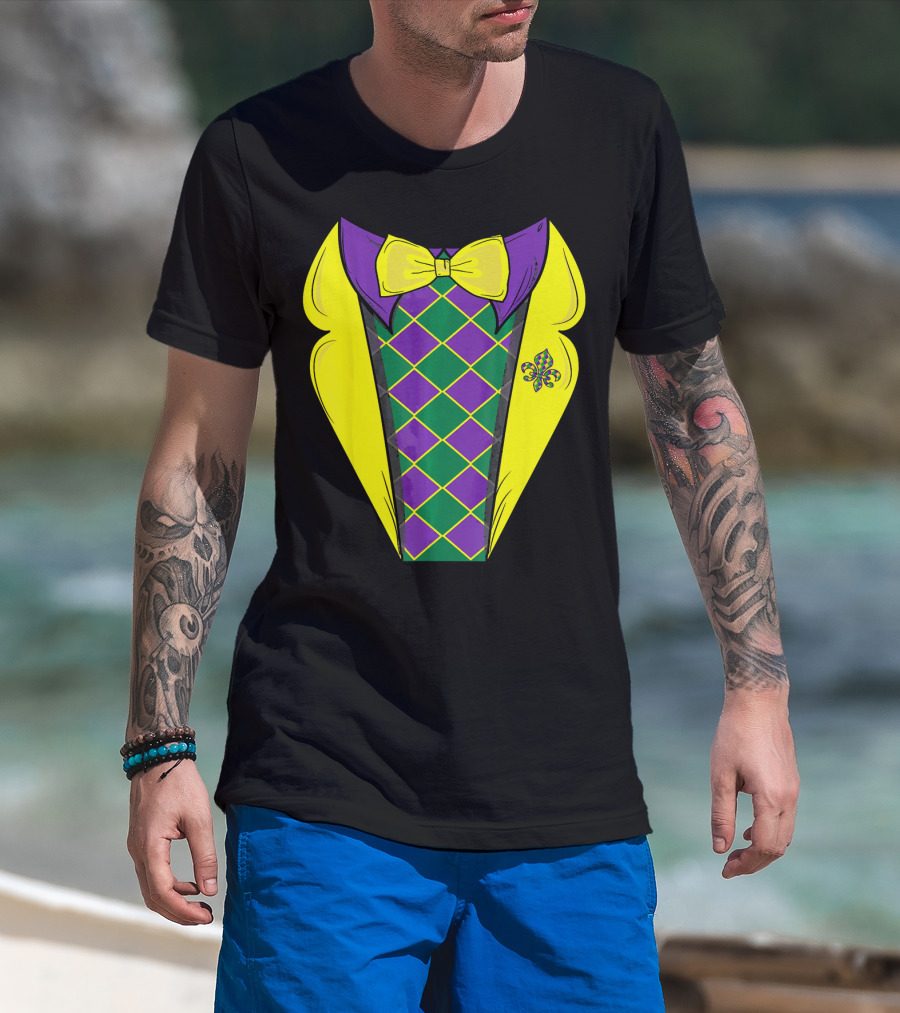 Mardi Gras Tuxedo Funny Party With Yellow Bowtie And Fleur-de-Lis T-Shirt