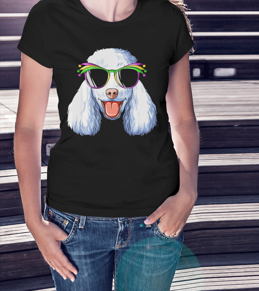 Poodle Mardi Gras Carnival Mask Sunglasses Happy Poodle T-Shirt