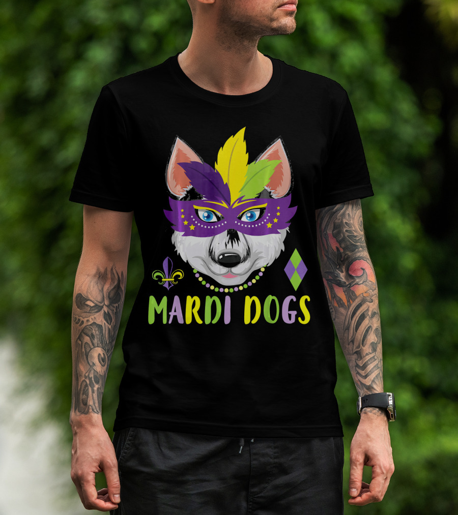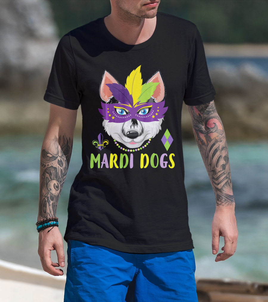 Mardi Dogs Siberian Husky Mask Beads Fleur-de-Lis T-Shirt