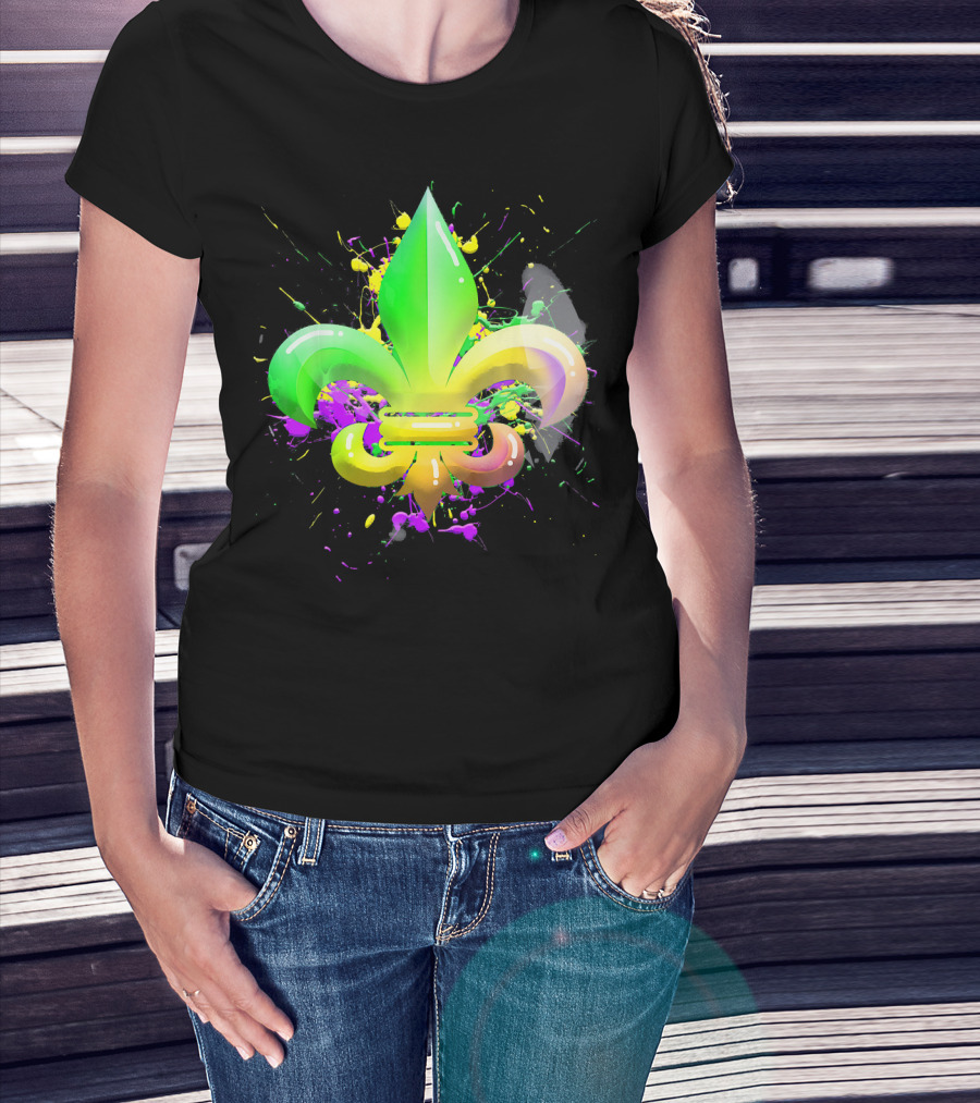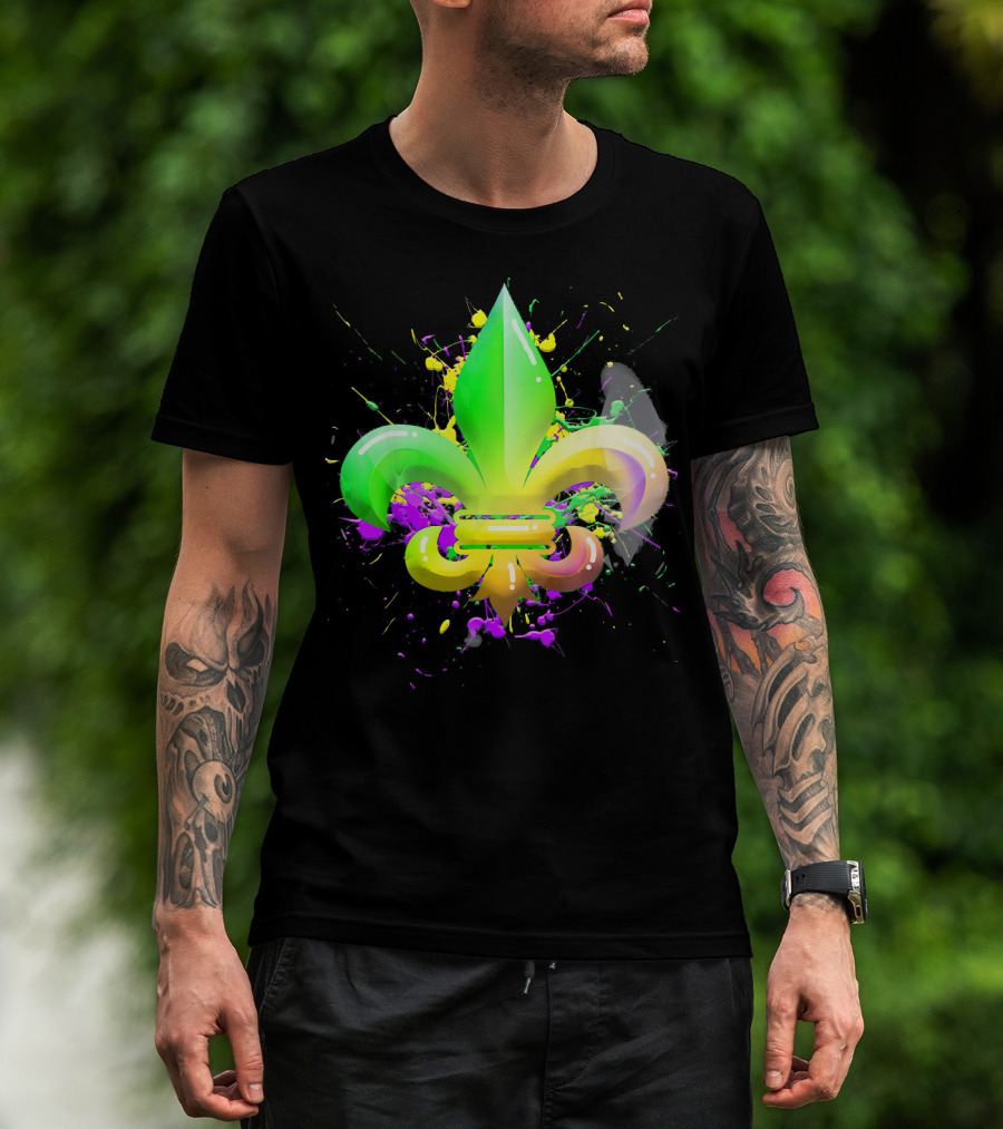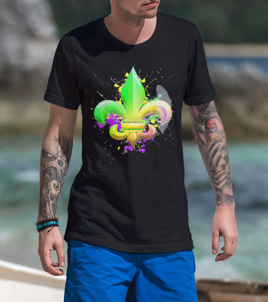 Mardi Gras Fleur De Lis Colorful Splash T-Shirt