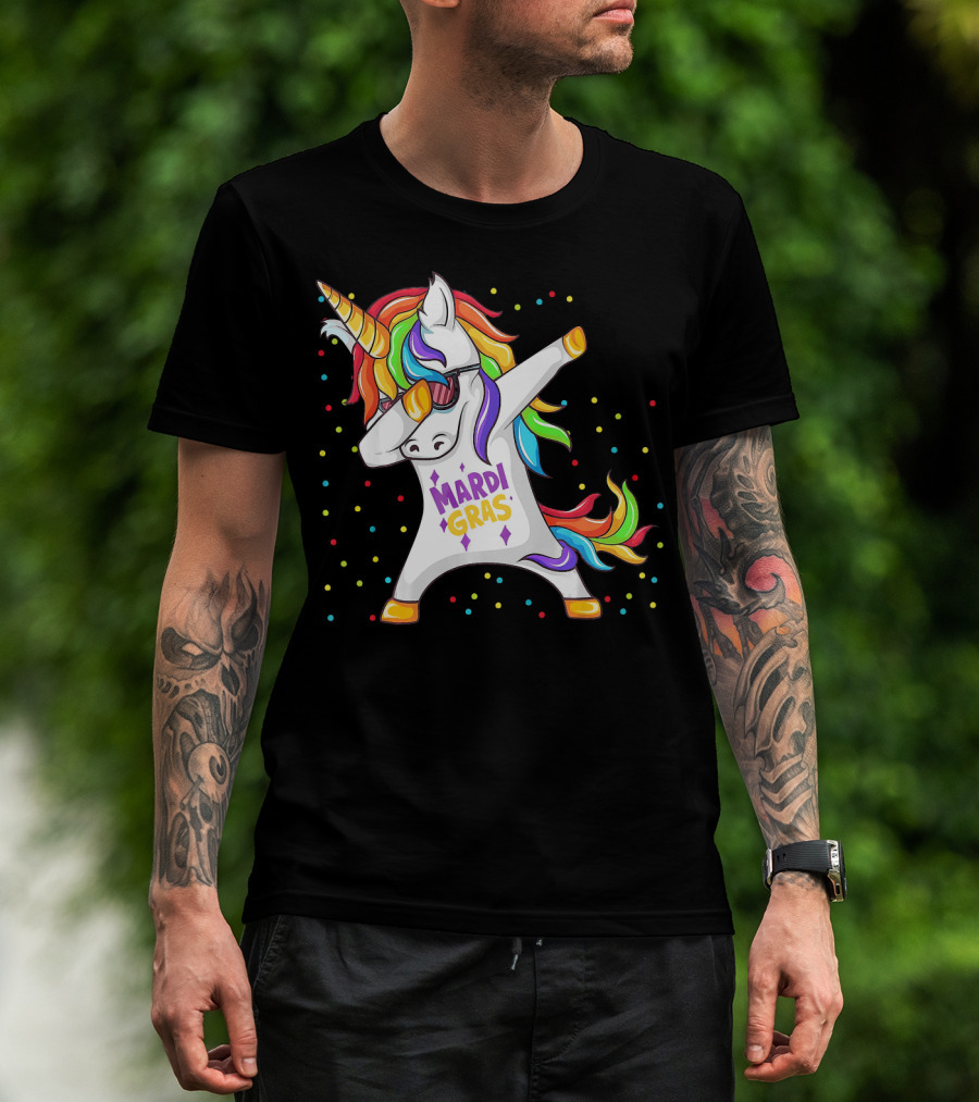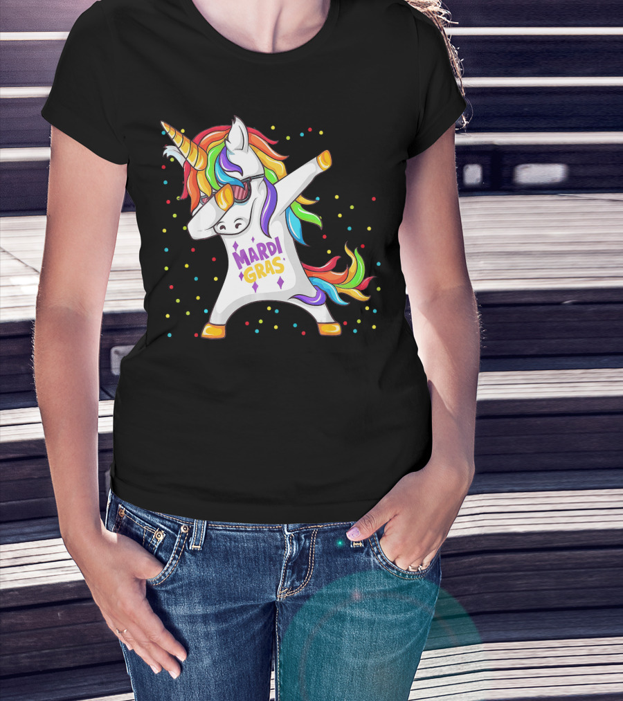 Mardi Gras Rainbow Unicorn Dabbing T-Shirt