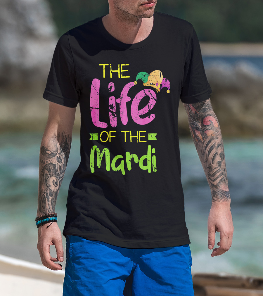 The The Life of the Mardi with Jester Hat T-shirt is designed for everyday wear and a consistent fit. Fabric is pre-shrunk ring-spun cotton with durable stitching. See the size chart below for exact measurements.