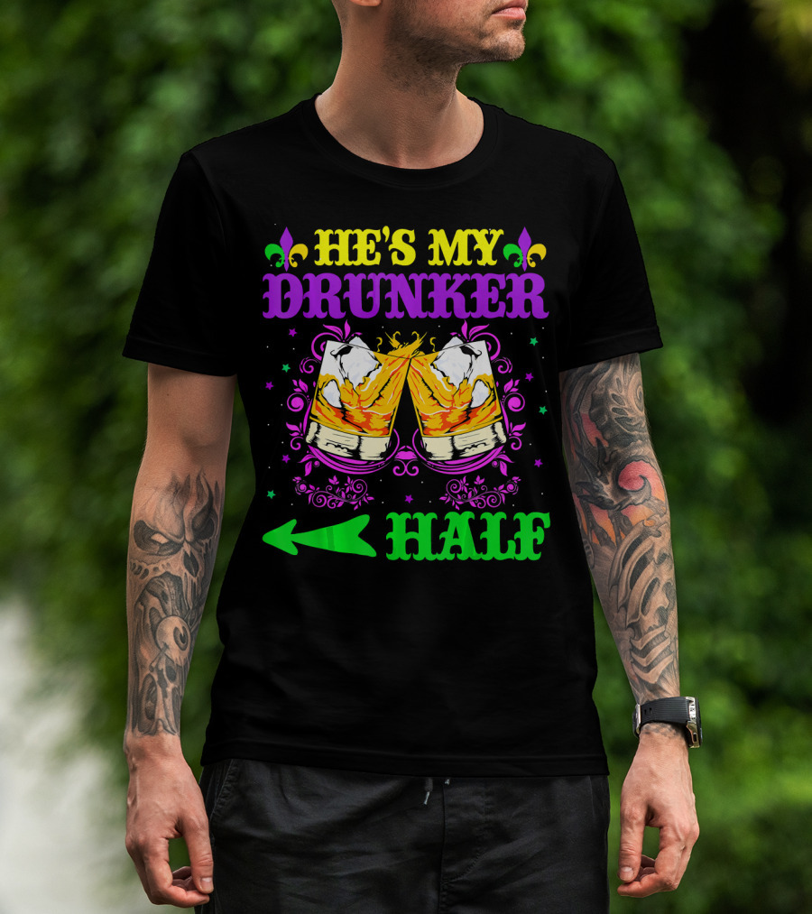 He's My Drunker Half Mardi Gras Fleur-de-Lis Cheers T-Shirt