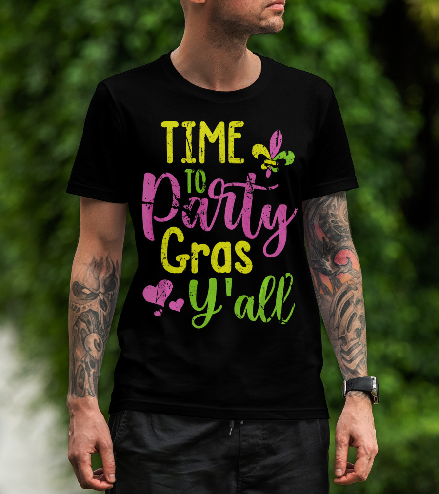 Time To Party Gras Y'all Fleur-de-Lis Mardi Gras Hearts T-Shirt