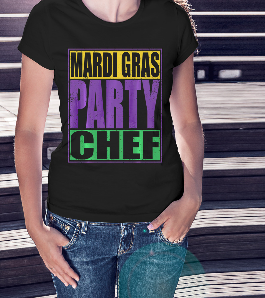 The Mardi Gras Party Chef New Orleans T-shirt is designed for everyday wear and a consistent fit. Fabric is pre-shrunk ring-spun cotton with durable stitching. See the size chart below for exact measurements.