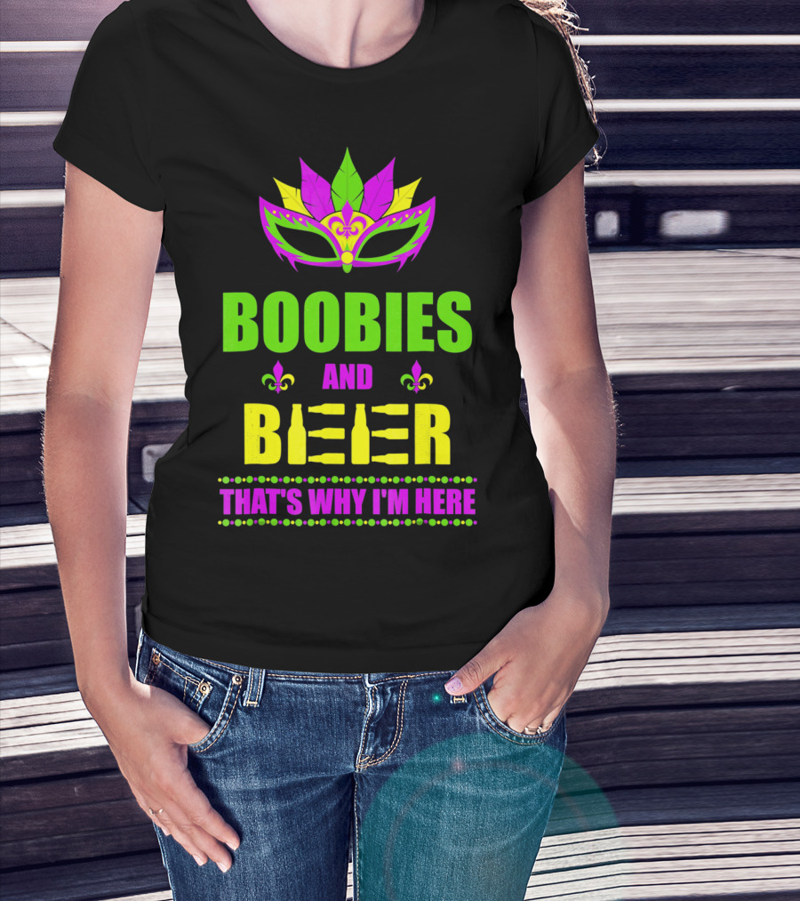 Boobies And Beer That's Why I'm Here Mardi Fleur De Lis Mask T-Shirt