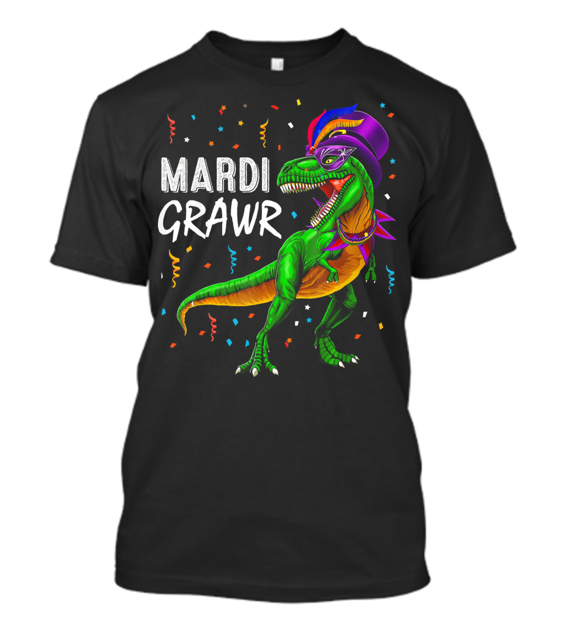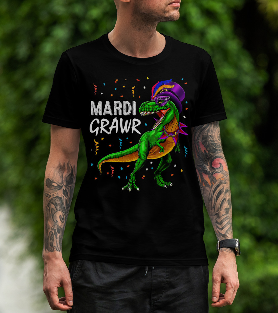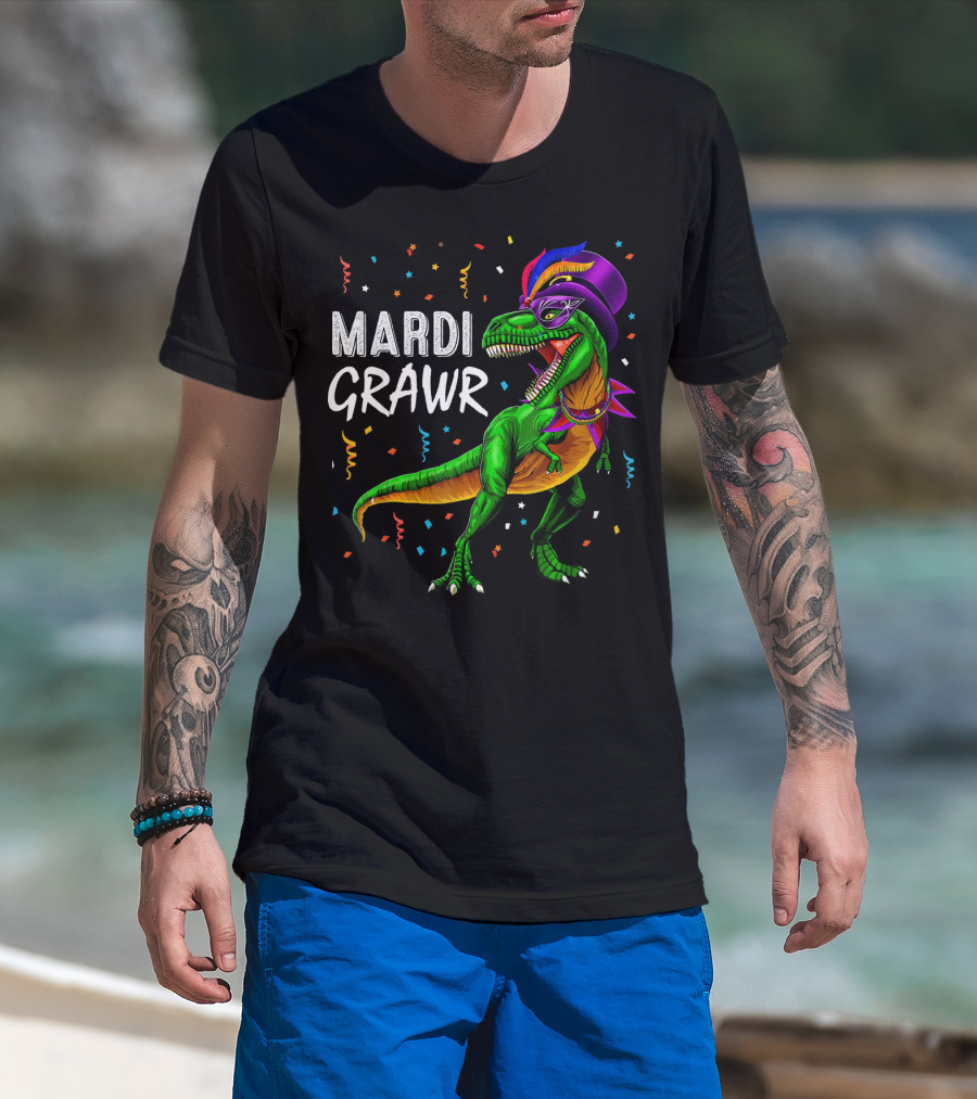 Mardi Grawr Rex Dinosaur In Masquerade Mardi Gras T-Shirt