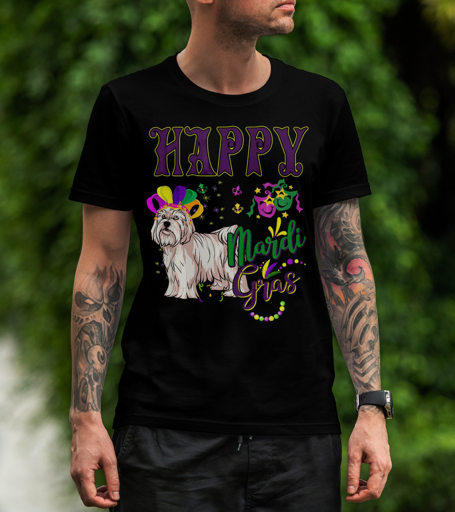 Happy Mardi Gras Maltese With Colorful Masks And Beads T-Shirt