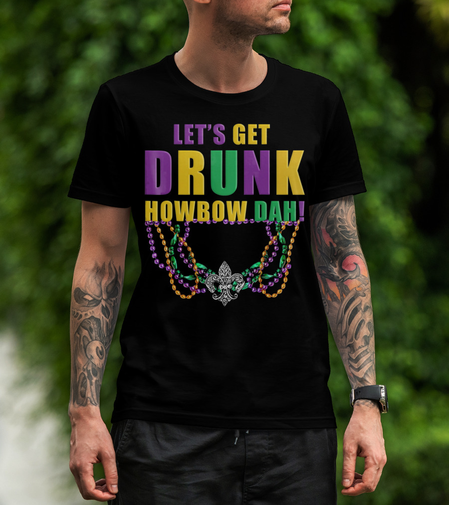 LET'S GET DRUNK HOWBOW DAH MARDI GRAS BEADED FLEUR-DE-LIS NECKLACE T-Shirt