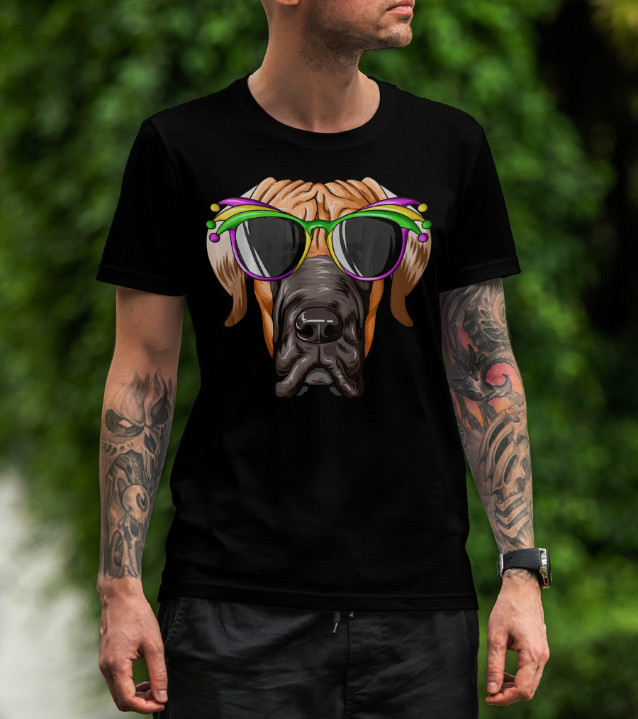Great Dane Mardi Gras Carnival Mask Sunglasses T-Shirt