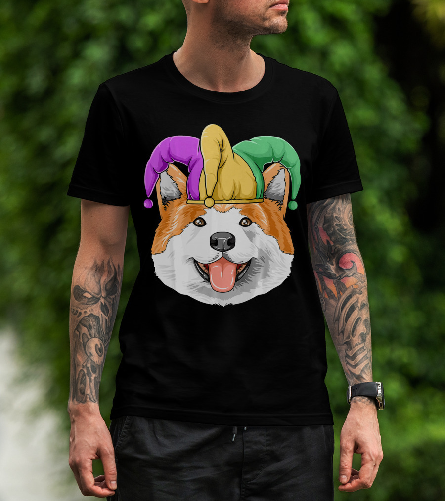 Mardi Gras Akita Jester Hat Carnival Akita T-Shirt