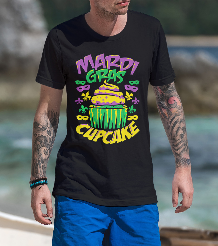 Mardi Gras Cupcake New Orleans Masks Fleur-de-Lis T-Shirt