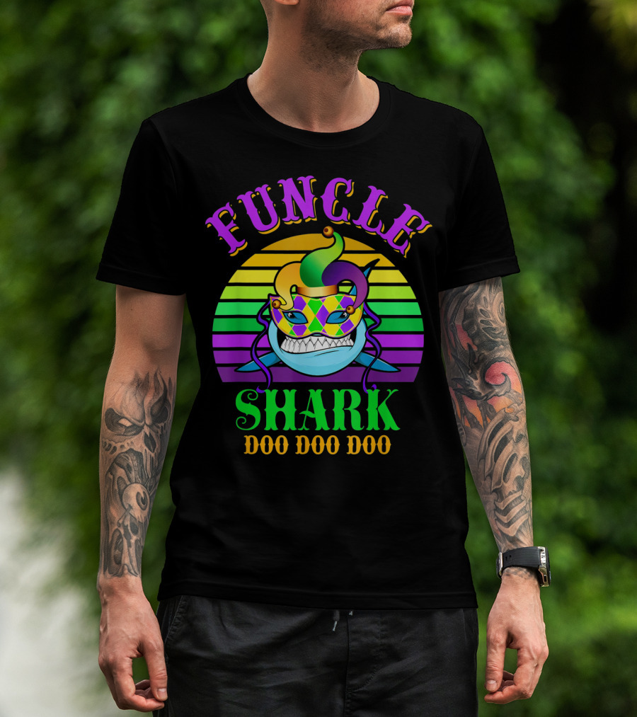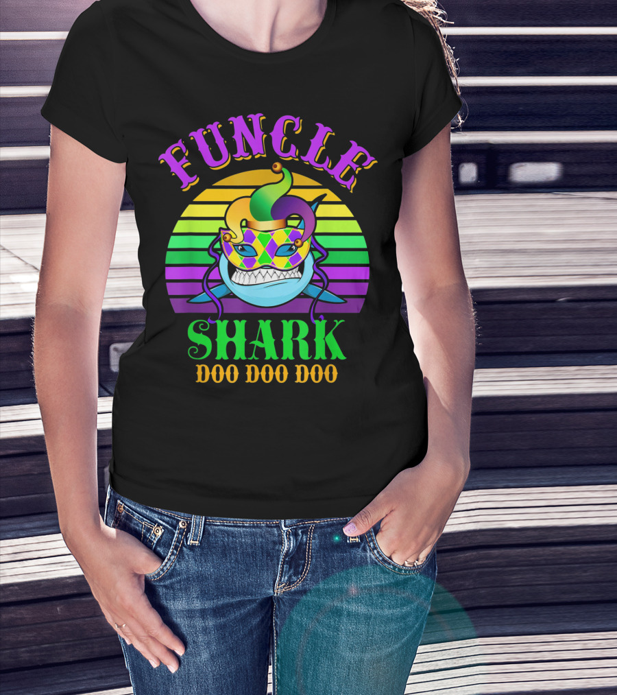 Funcle Shark Doo Doo Doo Mardi Gras Jester Mask T-Shirt