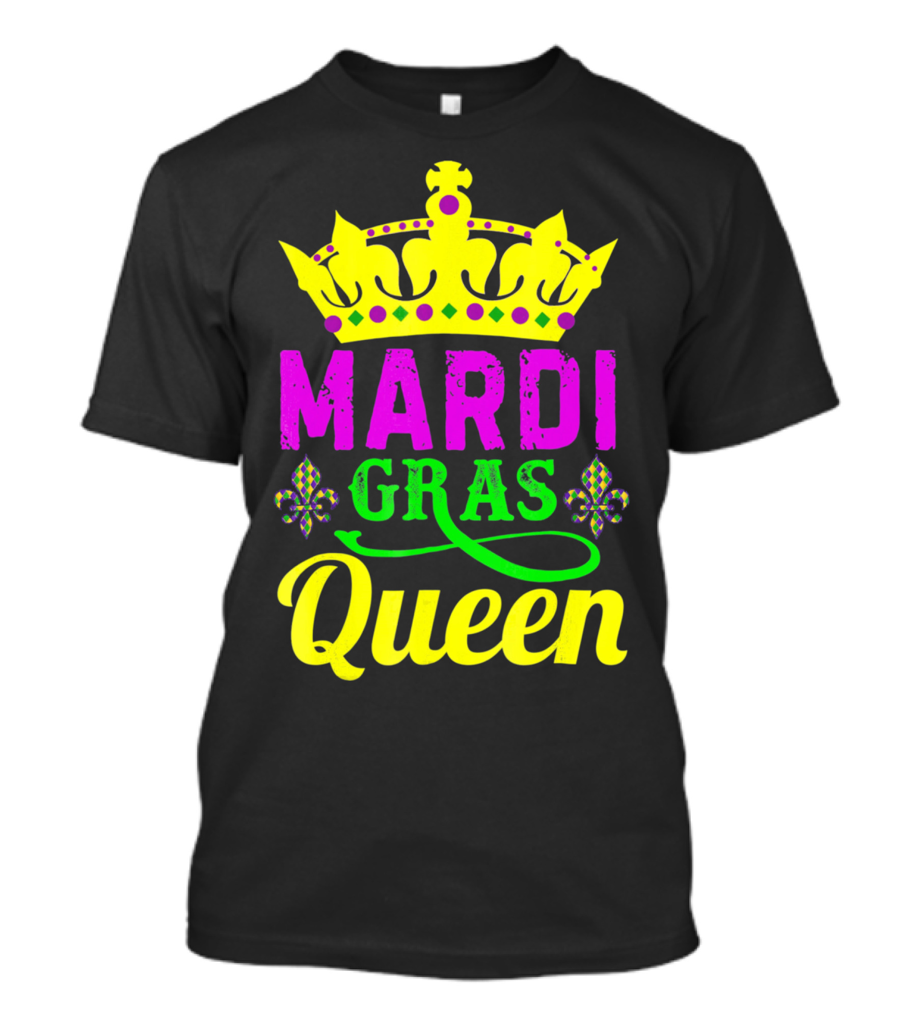The Mardi Gras Queen Crown Fleur De Lis Carnival Festival T-shirt is designed for everyday wear and a consistent fit. Fabric is pre-shrunk ring-spun cotton with durable stitching. See the size chart below for exact measurements.
