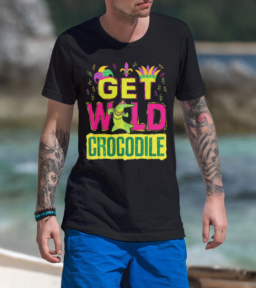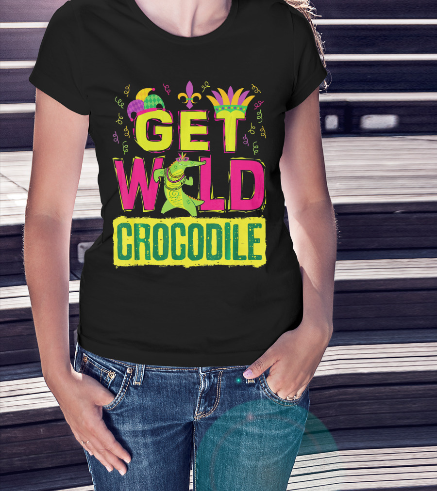 Get Wild Crocodile Mardi Gras Carnival Fleur-de-lis Festive Parade T-Shirt