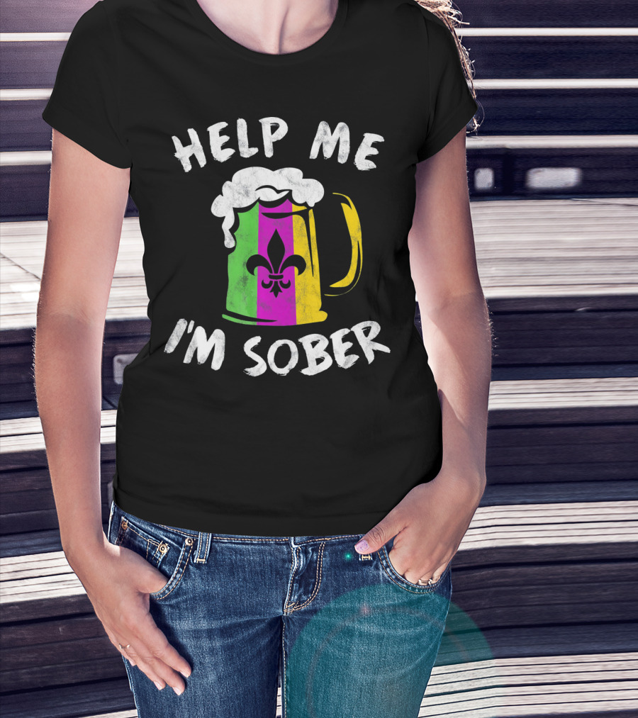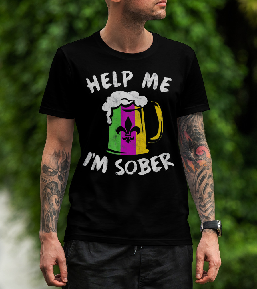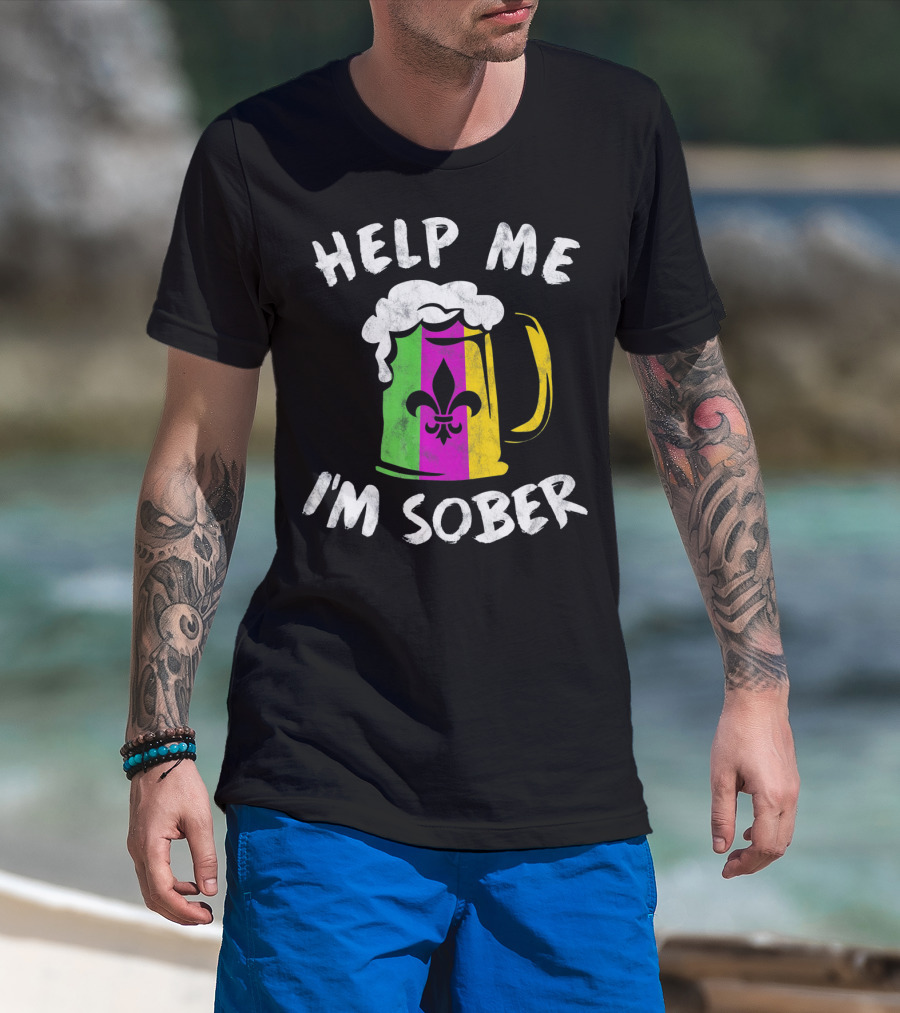 Help Me I'm Sober Fleur-de-Lis Mardi Gras Beer Mug T-Shirt