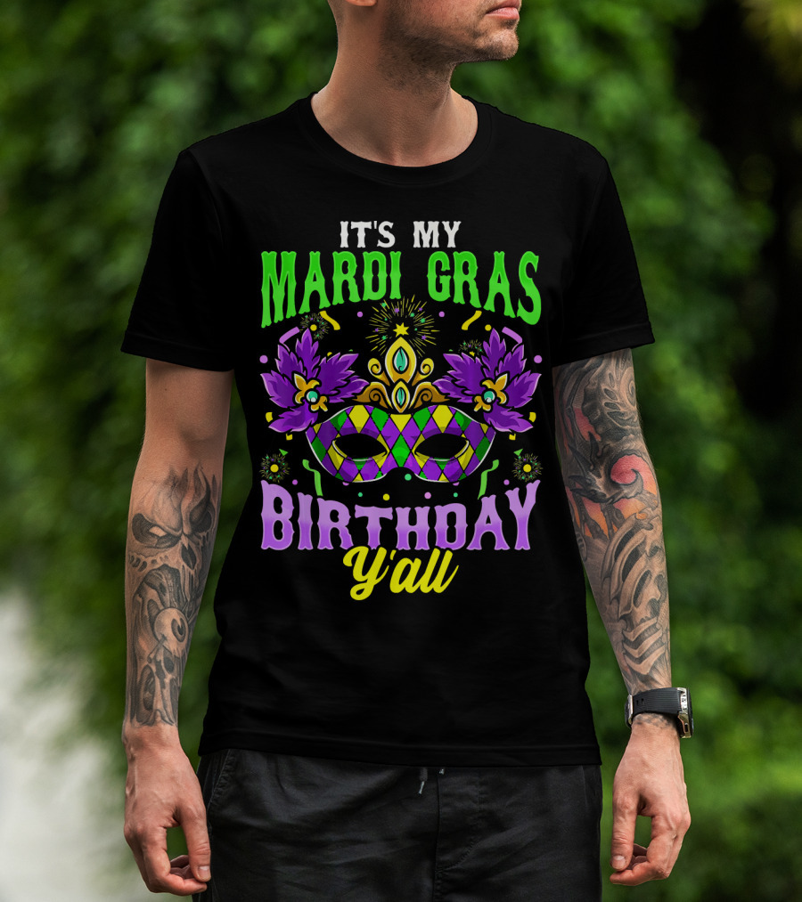 It's My Mardi Gras Birthday Y'all Colorful Mask T-Shirt