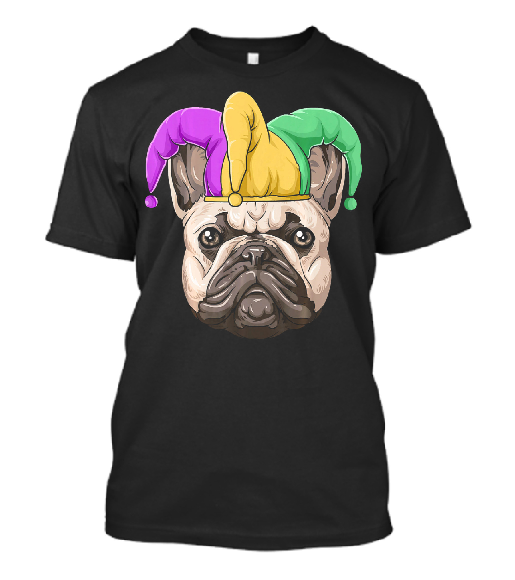The Mardi Gras Jester Hat French Bulldog T-shirt is designed for everyday wear and a consistent fit. Fabric is pre-shrunk ring-spun cotton with durable stitching. See the size chart below for exact measurements.