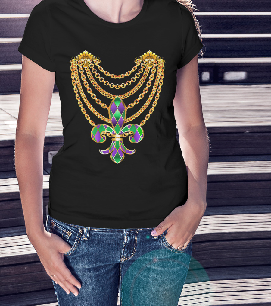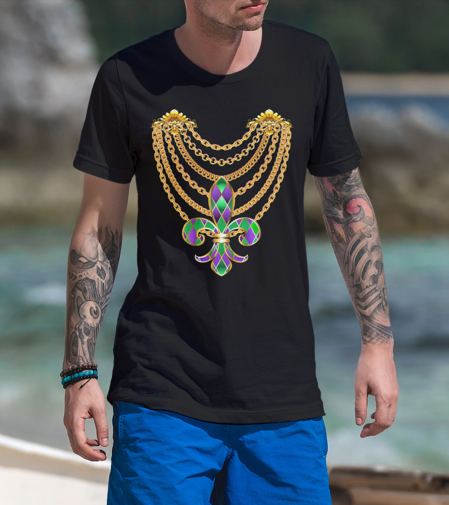 Mardi Gras Fat Tuesday Gold Fleur De Lis Chain T-Shirt