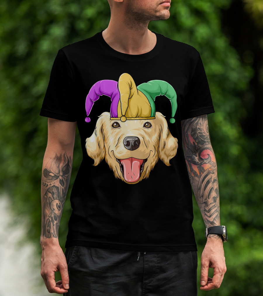 Golden Retriever Jester Hat Mardi Gras Carnival T-Shirt