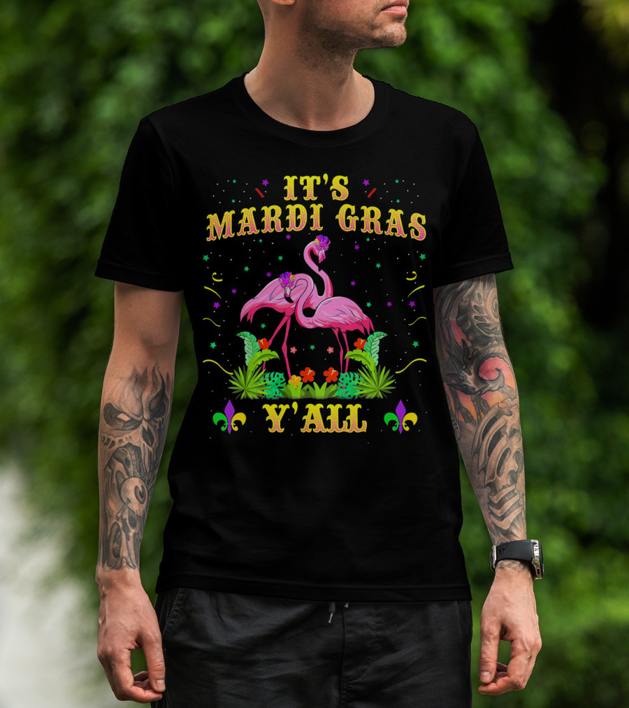 IT'S MARDI GRAS Y'ALL FLAMINGO FLEUR-DE-LIS T-Shirt
