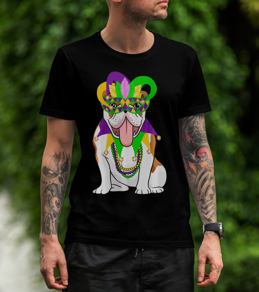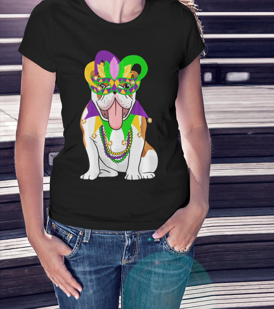 Mardi Gras English Bulldog Mask Beads Costume T-Shirt