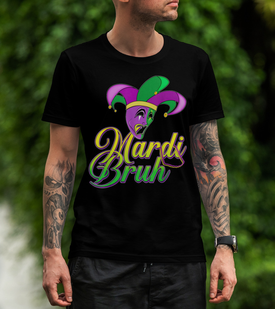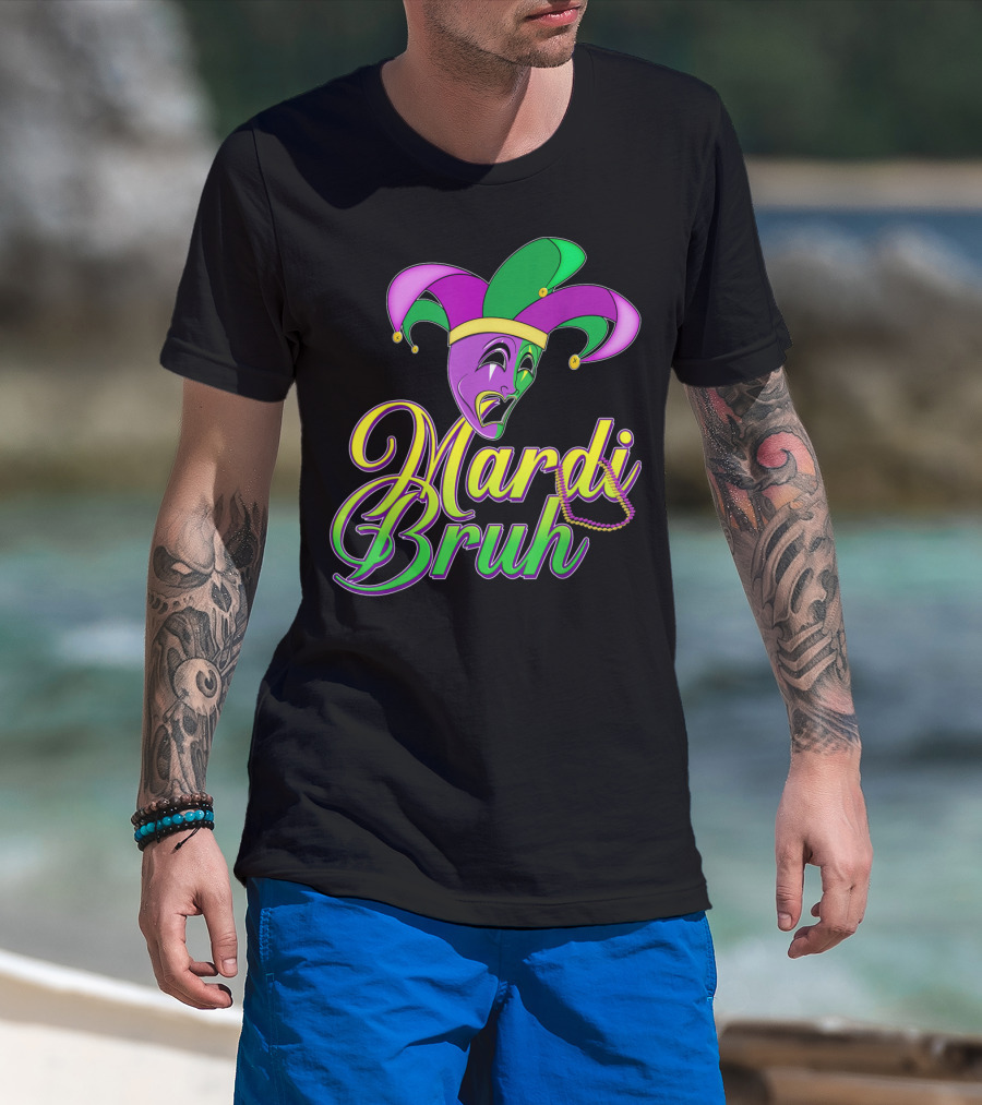 Mardi Bruh Jester Mask And Beads Mens Mardi Gras Funny Coupl T-Shirt