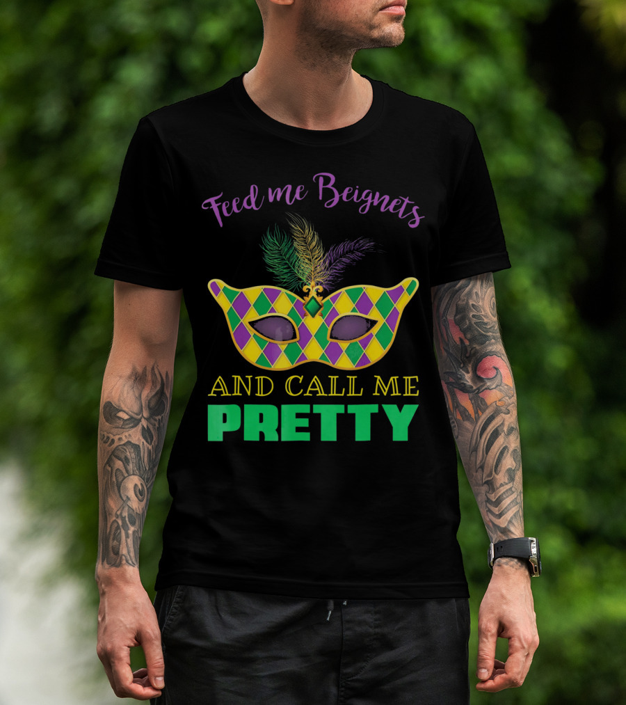 Feed Me Beignets And Call Me Pretty Mardi Gras Mask T-Shirt