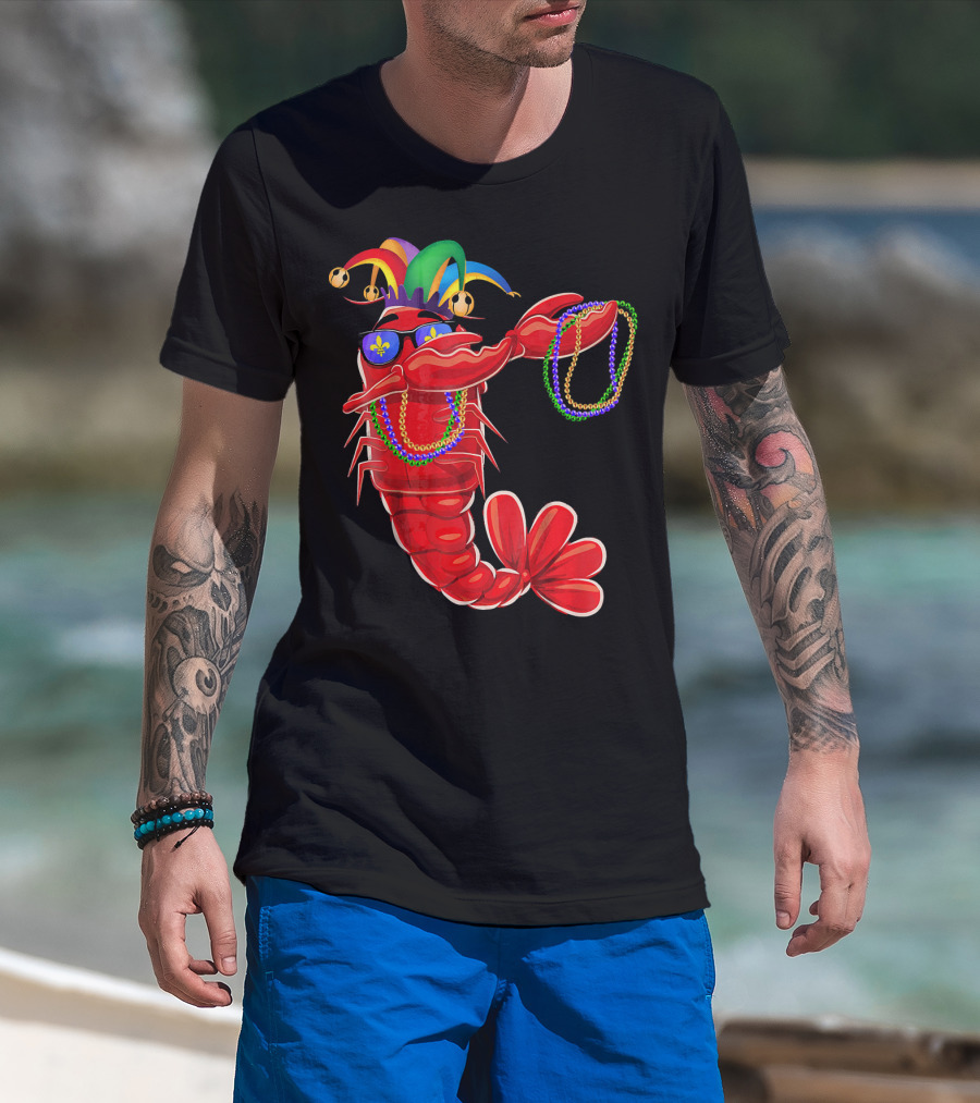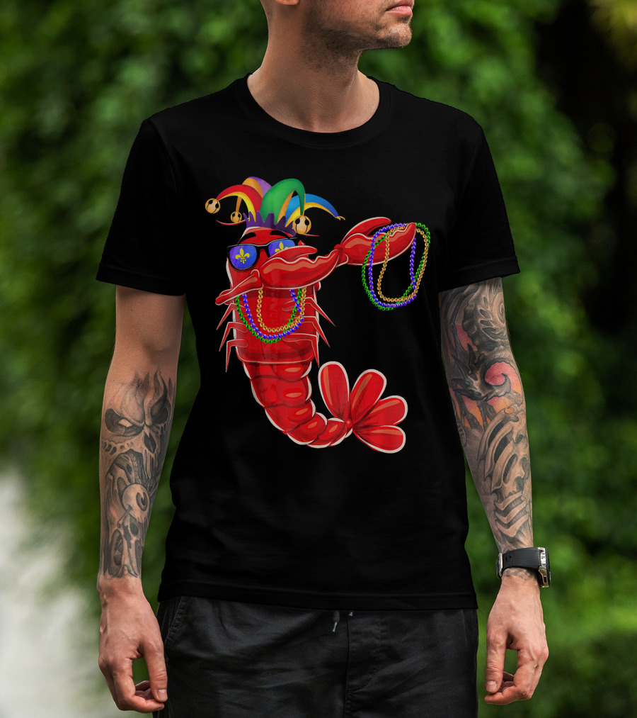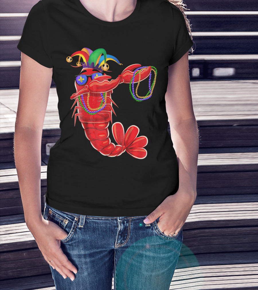 Mardi Gras Lobster Dabbing With Colorful Beads And Jester Hat T-Shirt