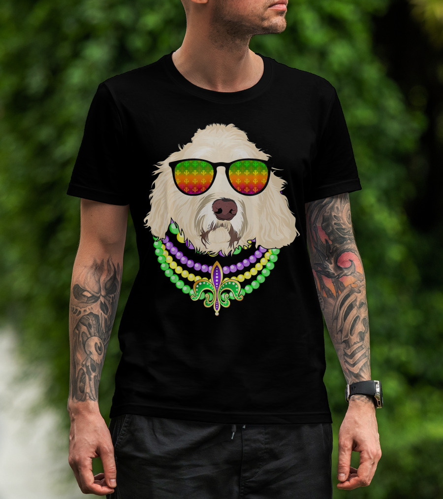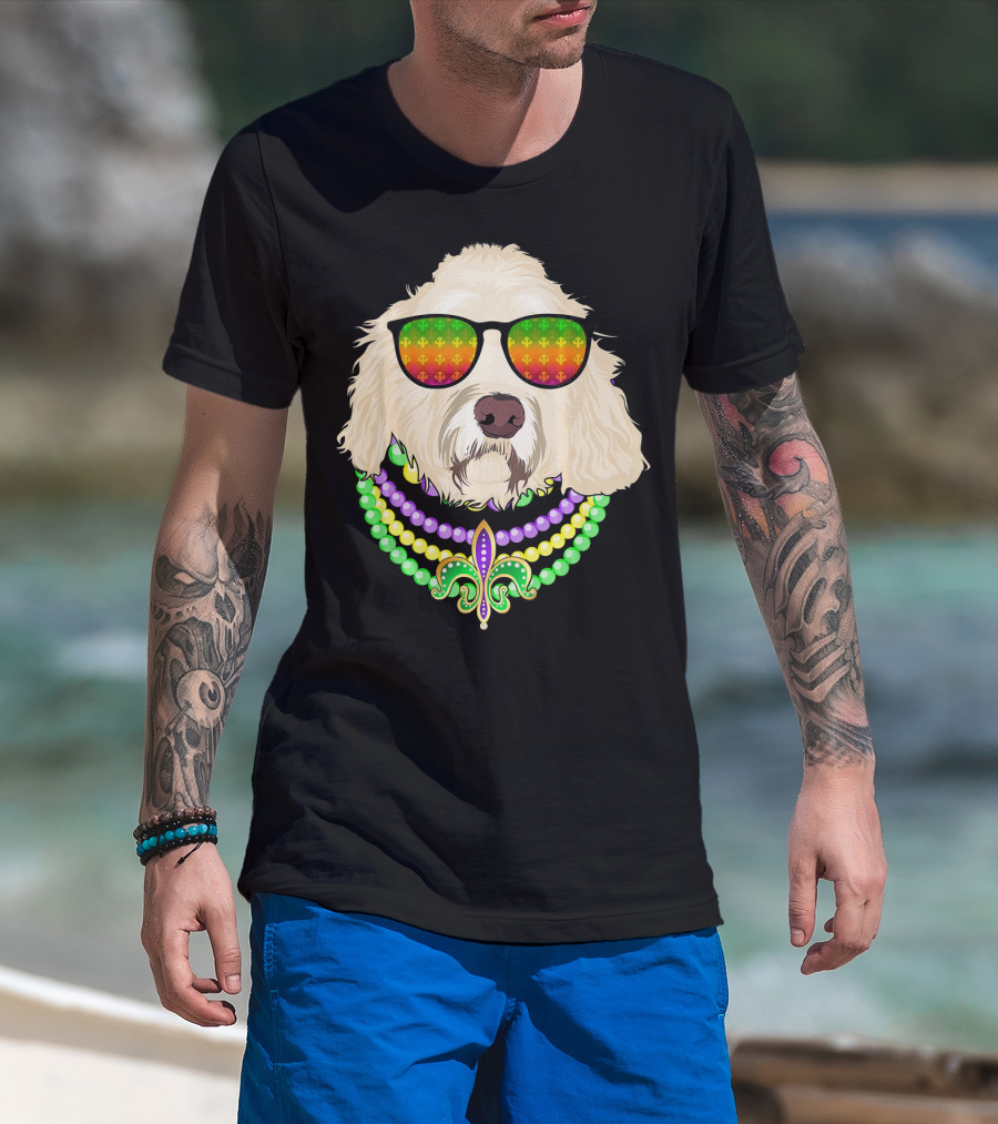 Goldendoodle In Beads And Shades Mardi Gras Fleur-de-Lis T-Shirt