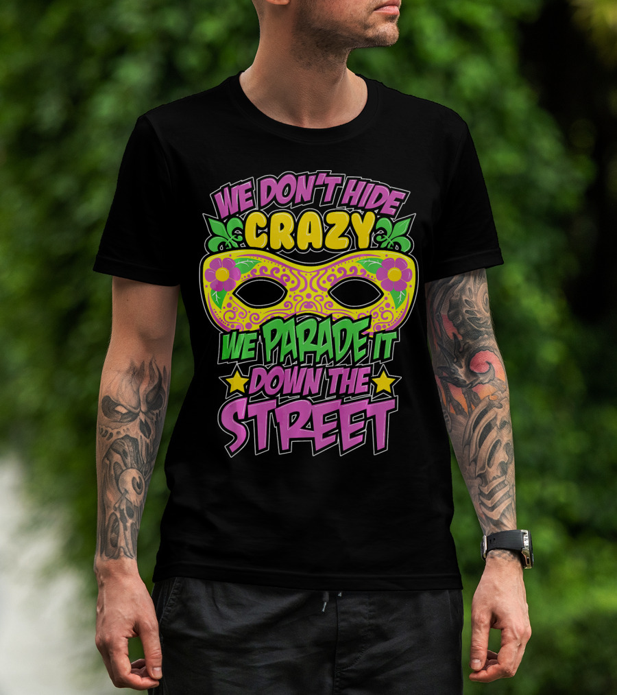 We Don't Hide Crazy We Parade It Down The Street Mardi Gras Mask T-Shirt