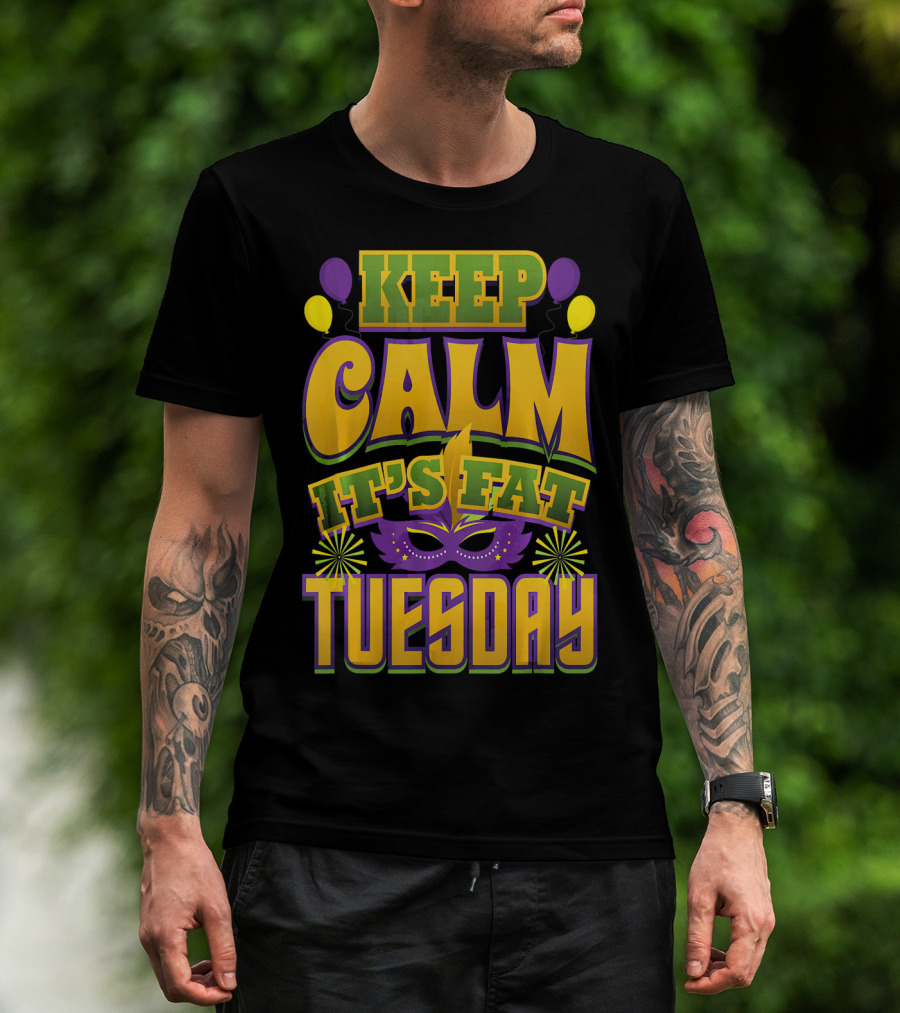 Keep Calm It's Fat Tuesday Mardi Gras Mask And Balloons T-Shirt
