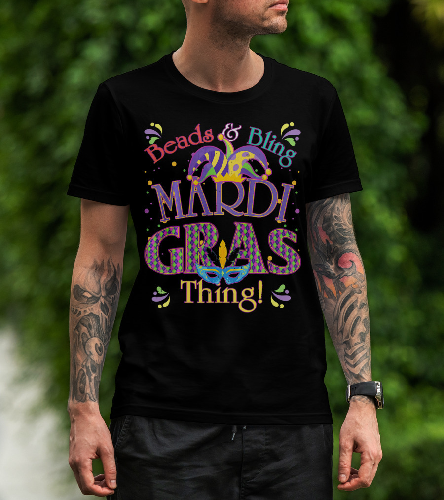 Beads And Bling Mardi Gras Thing Jester Hat Mask Confetti T-Shirt
