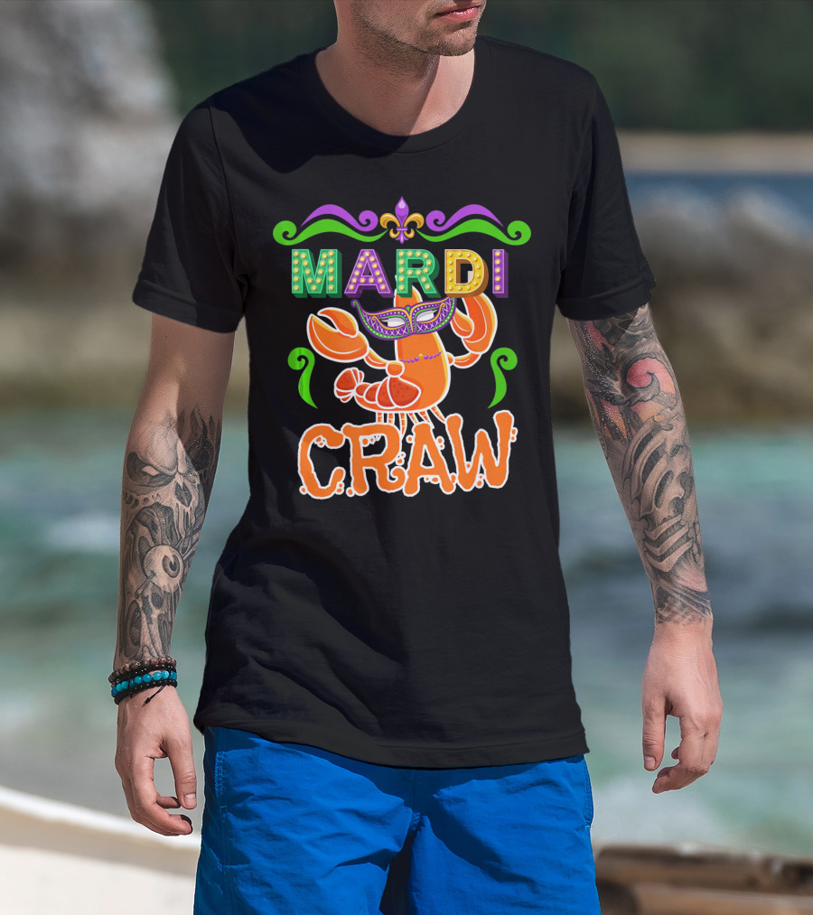 Mardi Gras Craw New Orleans Crab Mask Fleur-de-Lis T-Shirt